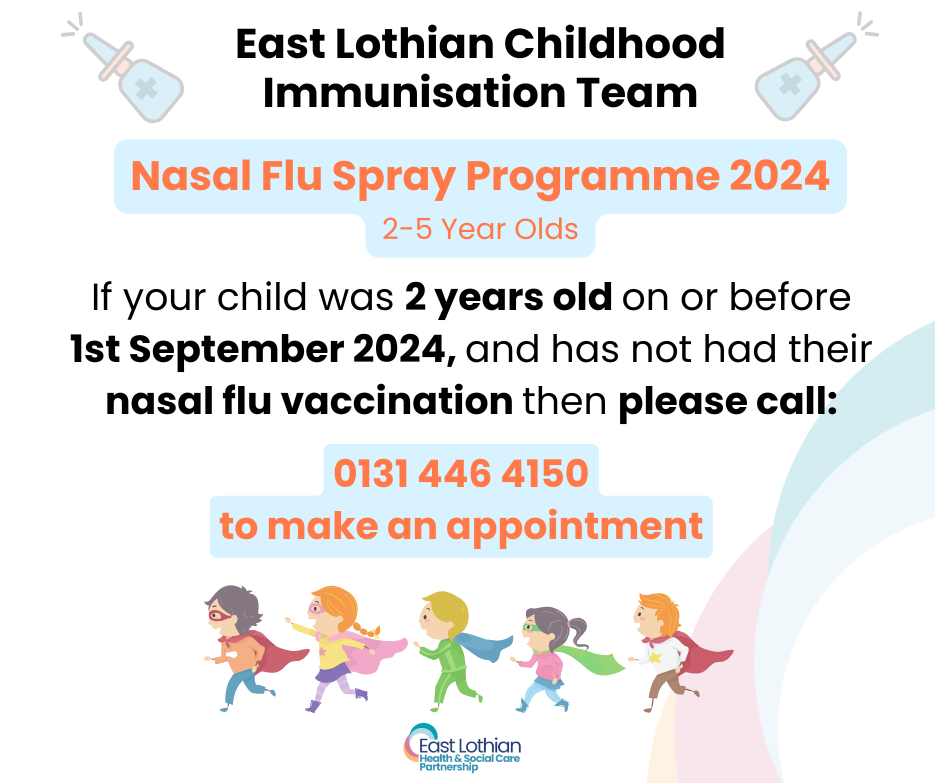 Childhood Immunisation – Nasal Flu Spray Programme 2024 Posted by: erinnisbett - Posted on: 19th November 202419th November 2024